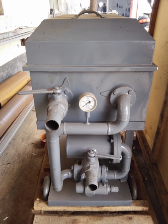 齒輪泵和電動機裝在過濾部分的下面,油泵輸出的液體通過排送管、止推板輸送到過濾部分。