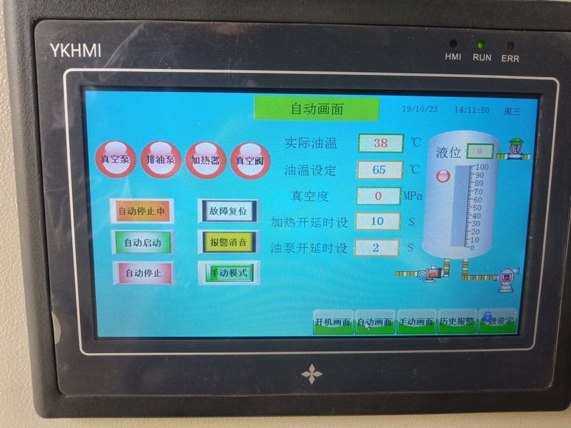 本機(jī)采用變頻器、液位變送器、溫度傳感儀、真空度傳感儀等一系列自動(dòng)控制儀表采集設(shè)備運(yùn)行的各種信息,交由中心處理器進(jìn)行處理,自動(dòng)控制整臺(tái)設(shè)備的運(yùn)行并監(jiān)視設(shè)備的運(yùn)行狀況。本機(jī)帶有各種保護(hù)裝置(過載保護(hù)、過壓保護(hù)、相序保護(hù)、異常運(yùn)行停機(jī)保護(hù)),可確保設(shè)備安全運(yùn)行。真空濾油機(jī)適用于:透平油、液壓油、潤(rùn)滑油、絕緣油、變壓器油、電容器油、壓縮機(jī)油
