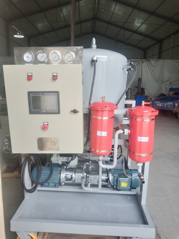 由真空罐、真空泵、冷凝罐、積液罐、補(bǔ)氣系統(tǒng)組成。采用優(yōu)化結(jié)構(gòu)設(shè)計(jì),極大的增加了油液在真空系統(tǒng)中的表面積,并***大限度的延長(zhǎng)了油液在真空系統(tǒng)中的行程。使油中的水分和氣體得到充分溢出。本機(jī)采用**的消沫系統(tǒng),使濾油機(jī)在工作時(shí)絕不會(huì)出現(xiàn)同類產(chǎn)品普遍出現(xiàn)的噴油現(xiàn)象。
